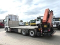Spezialaufbau: Kran: Palfinger PK 34002-SHB (Power Link Plus), Tragkraft max. 10.000 kg, faltbar, Funkfernbedienung, 3-fach hydraulischer Ausschub (Arbeitshöhe ca. 13.4 mtr), vollhydraulische 4-Punkt Abstützung, Ölkühler. Abgelesenes Lastdiagramm: Hebt bei 4.2m-7.5t, 6.1m-5.1t, 8m-3.8t, 10.1m-3t.Aufbau: Offene Pritsche (Beladehöhe ca. 1.180 mm), hohe Stirnwand, Hartholz/Stahlboden, 2 ausziehbare Containerverriegelungspaare (Twist Lock).EEV Kl. 1