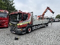 Scania P410 Pritsche mit Kran EZ.: 4/ 2014 562.900 KM mit Belege Euro6 Schadstoffklasse kurzes Fahrerhaus  Opticruisegetriebe Retarder Klima Anhängerkupplung Luftfederung vorne und hinten Reifen 375/55 R22.5 Profil ca. 50% Reifen 315/60 R22.5 Profil ca. 50% Radstand 5600mm Pritsche 7000mm Bordwände 800mm Ladehöhe ab Boden bis Oberkante Pritsche 1050mm   Leergewicht 11.600Kg Kran Palfinger PK13001 Baujahr 2014 nur 787 Stunden Funkfernsteuerung (radio remote control)  3 hydr. Ausschübe max.:/ 5460Kg 3.80m/ 3300Kg 5.50m/ 2250kg 7.40m/ 1600Kg 9.40m/ 1220Kg  Hakenhöhe ca. 12.50 Meter das Fahrzeug ist aus 1. Hand und befindet sich in einen gepflegten Zustand. Export/ nettopreis: 36.900 Euro Alle Angaben ohne Gewähr, Irrtümer vorbehalten. - Scheckheftgepflegt, Partikelfilter Fahrerhaus: Nahverkehr