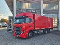 Für Anfragen zum Fahrzeug betreut Sie Herr Seidel (unter Tel. 06652/9666-42) gerne. Iveco S-Way AS260S50Y/FS 6x2-4 Schwenkwandkoffer + Ladebordwand Aufbau: Böse Schwenkwandkoffer, AUFBAUABMESSUNGEN: Länge x Breite i.L. ca. 8.100 x 2.470 mm (ausgelegt für 20 Europaletten), Seitliche Durchgangshöhe ca. 2.200 mm , Seitliche Bordwände durchgehend. Volleinzug über Dach im geöffnetem Zustand. , Ladeflächenhöhe ca. 1.300 mm unbeladen, 2x Anhängerkupplung (1x 40er oben und 1x 50er niedergekuppelt), CA Achskonfiguration 6x2P 3 Achsen, Nachlaufachse, CT Fahrerhaus Ausführung AS MY, DR Lenkung SX Linkslenkung, EM Emission Level Europe, EP Motorisierung 500 C13 Cursor 13 500 PS EuroVI, GT Getriebeschaltung TX-12M 12-Gang HiTroniX, automatisiert, MT Zulässige Gesamtmasse 26 t, RT Antriebsachse Variante SR Einfach untersetzt, Einzelachse, SU Federung FP Vollluftfederung, TF Bremsen DIS-DIS Scheibe/Scheibe, TT Zusatzachse STER Nachlaufachse gelenkt, Einzelbereifung, US Verwendung STD Standard, VE Fahrzeugvariante CABINAT Standard Fahrgestell mit Fahrerhaus, WB Radstand 5100 mm, 78507 Rocking Modus (Freischaukel-Modus), 73131 DRIVE T. 315/70R22,5, 01539 Frontgrilldesign Gun Metal, 02326 Lackierung der Fahrerhaus-Kunststoffteile in Fahrerhausfarbe, 04047 Gepäckfach links und rechts, 01627 IVECO Logo Gunmetal Grey, 79240 Schwarze Dekorfolie an Türen, 00632 Sonnenblende transparent, außen am Fahrerhausdach installiert, 72270 Bett unten einteilig, Härtegrad/Liegegefühl – weich, inkl. verstellbarem Kopfteil, 78563 Signalhorn hinter Stoßfänger (Druckluft), 01743 Bett oben mit durchgehender Matratze, 07599 Gewichtsvariante Vorderachse 8.000 kg/Hinterachse 11.500 kg(techn. möglich 12.000 kg)/Nachlaufachse 7.500 kg, 02532 Batterietrennschalter im Fahrerhaus, elektrisch schaltbar, 02270 Batterie 210 Ah High Performance AGM, 78713 Batterieladesteckdose, Klemmen, 05679 AdBlue-Tank, 80 Liter, 07806 Anhängerkupplung, Fabrikat Ringfeder, 05688 Kraftstoffbehälter 480 Liter, links, Aluminium, 06156 Anhängerkupplung, 40 mm, 130 kN, 00351 Kantenschutz Rahmenende, 01934 ECO NORMAL PERFORMANCE MODE, 78388 Elektroanschluss für Aufbau links am Rahmen, 02548 Seitenmarkierungsleuchten, 79454 Vorbereitung für Zusatzscheinwerfer an Fahrerhausdach, 75181 Warntongeber Rückwärtsfahrt, abschaltbar, 05108 Warnblinkleuchte, 00237 Retarder / Intarder für ZF-Getriebe oder Allison-Automatik-Getriebe, 52081 Verkehrsrot RAL 3020, 30804 Druckschriften (Bedienungsanleitungen), 30184 Reifenhersteller Fa. GOODYEAR, 20294 Bereifung 315/70 R22.5, 26095 FUELMAX ENDURANCE S D, 79443 Betriebs- und Wartungsanleitung gedruckt, 72525 Faltbarer Tisch im Bereich des Beifahrers, 01743 Bett oben mit durchgehender Matratze, 04047 Gepäckfach links und rechts, 72536 Zusatzheizung Diesel/Wasser 4KW, 72970 Standard Kühlschrank und Aufbewahrungsbox, 72251 Mit Vorhängen am Bett, 00876 Infotainment 10 TFT Display + integrierter Driver Pal, 02443 Lederlenkrad, 01765 Armaturenbrett-Design: Kunststoff mit silbernen Zierleisten, 02759 Luftfederung für Fahrerhaus, 05629 Sonnenblendrollo für Seitenscheibe, Fahrer- und Beifahrerseite, 02916 Fahrersitz HI-Comfort , mehrfach verstellbar, luftgefedert, integrierte Kopfstütze und integrierter höhenverstellbarer Sicherheitsgurt, Lendenwirbelstütze, mit 3-stufiger Kühl- oder Heizfunktion, 72543 Scheinwerfer vorne LED, 78715 LED-Rückleuchten, 72629 Nebelscheinwerfer inkl. Kurven-/Abbiegelicht, 00869 Mirror Cams Cover bei AS FHS in Wagenfarbe / Bei AT/AD in Schwarz, 78878 GPS-Tempomat Hi-Cruise, 08330 Hi-Tronix Nur Automatik-Modus, 00915 Elektrische Feststellbremse, 07306 Achslastanzeige im Cluster, 78287 Fahrspurüberwachungs-Assistent (LDWS), 14522 Abstandsregeltempomat (ACC), 73240 Elektrohydraulische Servolenkung Auf Wunsch unterbreiten wir Ihnen ein Leasing- oder Finanzierungsangebot. Her... ESP, Navigationssystem, Standheizung, Virtuelle Seitenspiegel Fahrerhaus: Fernverkehr