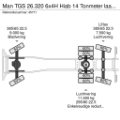Front axle: Tyre size: 385/65 22.5; Max. axle load: 9000 kg; Steering; Tyre profile left: 50%; Tyre profile right: 50%; Suspension: leaf suspension