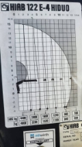 Grua Hiab 122 E-4 Hiduo com comando á distancia, 4 extensões hidráulicas (12,50m) e com sapatas extensíveis hidráulicas.