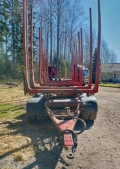 Jyki V52-T0 -5 akselinen puutavara perävaunu -2,3,5 akselit nousevat -265/70R19.5 renkaat -uusi kääntökehä -12 uutta rengasta -pyörät ollut auki viime kesänä ennen katsastusta, ei moitteita. Uusittu kaksi jarrukelloa ja kaksi ilmapussia, abs/ebs johtosarja vaihdettu vuosi sitten. -Ilmakiristimet.