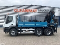 - Palfinger 36 tonne-metre loading crane (type: PK 36002) - 5 x hydraulic extensions - 5-e and 6-e function - 4x tuned - Rotator - Oil cooler - Radio remote control - Lifting table: * 5.7 meters -> 5,370 kg * 7.5 meters -> 3,920 kg * 9.5 meters -> 2,990 kg * 11.5 meters -> 2,410 kg * 13.7 meters -> 2,010 kg - Open cargo box - Dimensions (interior): length 400 cm x width 247 cm x height 60 cm - Height of loading floor: 143 cm - Aluminium hinged sideboards - Lashing eyes - Only 133,291 Km! = More information = General information Number of doors: 2 Cab: day Technical information Power: 302 kW (411 HP) Engine capacity: 12.882 cc Transmission Transmission: Manual gearbox Axle configuration Axle configuration: 6x4 Tyre size: 13R 22.5 Make axles: Anders Suspension: leaf suspension Front axle: Max. axle load: 8000 kg; Steering; Tyre profile left: 70%; Tyre profile right: 70% Rear axle 1: Double wheels; Max. axle load: 10000 kg; Tyre profile left inner: 60%; Tyre profile left outer: 60%; Tyre profile right outer: 60%; Tyre profile right outer: 60%; Reduction: hub reduction Rear axle 2: Double wheels; Max. axle load: 10000 kg; Tyre profile left inner: 60%; Tyre profile left outer: 60%; Tyre profile right outer: 60%; Tyre profile right outer: 60%; Reduction: hub reduction Measures and weights Empty weight: 18.560 kg Carrying capacity: 7.440 kg Wheelbase: 350 cm Functional Crane: Palfinger PK36002, year of manufacture 2008, on rear of chassis Interior Number of seats: 3 Environment Emission class: Euro 5 Condition Technical condition: good Visual appearance: good