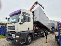Year 2003 811260 KM 8x2 tipper + Tirre Euro 131 With remote control Extra videos on our youtube page = More information = General information Year of manufacture: 2003 Colour: White Technical information Power: 302 kW (410 HP) Empty weight: 16.340 kg Transmission Transmission: Automatic Axle configuration Axle configuration: 8x2 Front axle: Steering Rear axle 1: Steering Rear axle 2: Double wheels Rear axle 3: Steering Functional Crane: Tirre Euro 131, behind the cab Tipper: Back Environment Emission class: Euro 3 Condition Technical condition: good Visual appearance: good