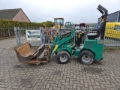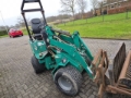 Nette en goed onderhouden shovel. Hydraulisch snelwissel, puinbak, palletvorken en tegelriek. 2 Hydraulische aansluitingen. Knikbesturing. Joystick bediening.