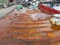 Det ligger mye rust og slam i bunn, trenger vask men platetykkelse er målt til ca. 5 mm.