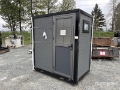 6 ft 7 in x 4 ft 3 in Skid-Mounted White/Black Frame Portable Toilet (Unused)