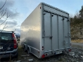 Stor og romslig Ifor Williams lukka skaphengar selgast. Hengaren er registrert med totalvekt 3500 kg og har to akslar à 1800 kg. Den har fullt lukka karosseri med sidedør med utfellbart stigtrinn, og rampe bak. Draget er utstyrt med påløpsbrems og støttehjul som vist på bileta.