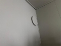 Veggpanel på det ene kontoret er bøyd ut, trolig grunnet fuktighet.