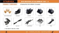 (1) 8 in Bucket, (1) 24 in Bucket, (1) 32 in Bucket, (1) 8 in Auger, (1) 12 in Auger, (1) Quick Coupler, (1) Rake , (1) Ripper, (1) Grapple, (1) Set of Bucket Teeth w/ Side Cutter