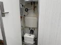 Toalett med kvern, dusj, håndvask