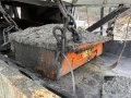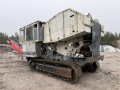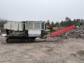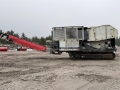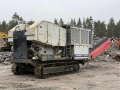 2021 Haahjem CTC 1208 SD Beltegående knuseverk Funksjonsbeskrivelse Grovknuseverket CTC 1208 SD er en selvgående maskin med egen energiforsyning fra en dieselmotor. Den kan operere som selvstendig enhet for knusing av steinmateriale. Maskinen er modulbasert og består av tippbar matetrakt, kjeftknuser, sikt, båndtransportører, rammeverk og driv- og styreenhet. Grovknuseverket betjenes via fjernstyring og mates fra gravemaskin til matestasjonen på maskinen. Denne består av en tippbar matetrakt som fører steinmaterialene til kjefteknuseren for knusing. Matetrakten er utformet slik at den hindrer inntak steinmateriale større enn inntaksåpningen til knuseren. Ved hjelp av den hydrauliske tippfunksjonen kan operatøren vha. fjernstyringen løfte ut for store steiner for bearbeiding på bakken. Før transport av grovknuseverket med lavhenger, løftes den tippbare matetrakten og sidetransportøren, og alternativt også hovedtransportøren av maskinen. Hovedmaskinen beltes på lavhenger for transport. Maskinen transporteres og rigges for drift i motsatt rekkefølge. TIPPBAR INNMATETRAKT Tippbar ved integrert hydraulikk sylinder og fjernstyrt betjening. - Bredde innv. 3,0 meter - Lengde innv. 2,6 meter - Vekt ca. 4,1 tonn Knuser Rotasjonsknuser (kjeftknuser) - Type HJ 1208 Nordic / Sandvik CJ412 - Inntaksåpning 1200 x 800 (830) mm - Innstillingsområde 75(100) - 250 mm - Lengde fast knuseplate 1,8 m - Vekt, knuser ca. 26,5 tonn Belteunderstell Begge beltene er drevet av aksialstempelmotorer. Mellom drivhjul og hydraulmotor er det bremse som tilkoples når hydraultrykket reduseres. - Kjedestørrelse DA7 - Hastighet ca.1 km/time - Platebredde 550 mm - Beltelengde c/c 3,8 meter Horisontalsikt Vibrasjonsmaskineri HAAHJEM® H13X - Driftsturtall 875-1080 o/min - Sikteflate ca. 4,2 m 2 - Lengde, duk 3,30 m - Bredde, duk 1,25 m - Lengde, totalt 4,3 m - Vekt ca. 2.800 kg Siktet har hel bunn for transport av finfraksjonen. Øvre dekk har sidespenning med hel- eller todelt sikteduk, foretrukket av typen "press-sveist". Hoved-båndtransportør - Lengde c/c 8,8 meter - Båndbredde 1100 mm - Stigning ca. 18o (kan varieres) - Det er med ledeskjermer langs gummibåndet i pålastesonen. - Båndavskraper utvendig ved drivtrommel og innvendig ved vendetrommel. Sidetransportør fra sikt - Lengde c/c 7,5 meter - Båndbredde 900 mm - Det er med ledeskjermer langs gummibåndet i pålastesonen. - Båndavskraper innvendig ved vendetrommel. - Båndtransportørene er montert til belteknuseren ved hurtigkoblinger. Driv- og styreenhet Drivenheten er bygget sammen som en separat modul med hydraulisk- og elektrisk utrustning. Kraftpakken hviler på stålfundament, festet til knuseverkets hovedramme og har innebygget tankvolumer til drivstoff og hydraulikkolje. Kraftpakken er festet slik at den forskyves hydraulisk for stramming av kileremoverføringen til knuseren. Tilkobling og kraftoverføring til knuseren skjer via selvjusterende hydraulisk clutch. Elektroutrustning har sikringsskap i rustfritt stål, med automatsikringer plassert ved styrepanel. Styrepanel innholder styring av drivenheter for maskinen, samt overvåkningspanel for dieselmotor. Maskinen er utrustet med LED strobelys plassert for god belysning rundt maskinen, samt i sideskap og innvendig i motorpakken. Motorpakken er utstyrt med store adkomstdører og luker på sidene, samt hevbare toppluker for enkel tilkomst. Daglig ettersyn og servicevedlikehold utføres ”under tak” Dieselmotor Scania Turbodiesel - Scania, DC13, 312A, en vannkjølt, 4-takts, 6-sylindret dieselmotor som er direkteinnsprøytet med turbolader og intercooler. - EU Steg V oppfyllelse via etterbehandling av avgass - Ytelse: ca 331 kW (450 HP) – ved 1800 o/min - Drivstofforbruk; 191 g/kWh at 1/1 Betjening, fjernstyring Grovknuseverket er utstyrt med en omfattende fjernstyring for betjening av belteunderstell, start