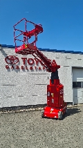 Endkundenbemerkung: Traglast 200 kg Max. Personenzahl 2 Arbeitshöhe 11,20 m Maximale Plattformhöhe 9,20 m Max. vertikale Reichweite 3,00 m Max. horizontale Reichweite 7,89 m Gesamtlänge 2,53 m Gesamtbreite 1,00 m Gesamthöhe 1,99 m Plattformlänge 0,62 m Plattformbreite 0,87 m Bodenfreiheit (verstaut) 0,07 m Bodenfreiheit (erhöht) 0,02 cm Radstand 1,22 m Wenderadius (innen) 0,23 m Wenderadius (außen) 1,65 m Drehbereich Oberwagen 345° Steigfähigkeit 25% Jib-Bewegung +70°/-60° Fahrantrieb 24 V / 1,5 kW Hubantrieb 24 V / 3 kW Fahrgeschwindigkeit (eingefahren) 4,5 km/h Fahrgeschwindigkeit (bewertet) 0,5 km/h Aufwärts-/Abwärtsgeschwindigkeit 42/38 sec Batterie 24 V/240 Ah Integriertes Ladegerät 24 V 30 A Max. Arbeitshang (Innenbereich) 2,5°/2,5° Reifen 381x127 Gewicht 2.950 kg, Sonderausstattung: Max. Personenzahl 2 Wenderadius (innen) 0,23 m Wenderadius (außen) 1,65 m Steigfähigkeit 25%