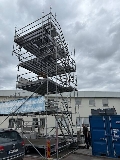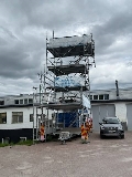 I bilderna är den byggd med fyra plattformar och en total höjd om ca 8,70 meter. Märket är Altrad Assco.
