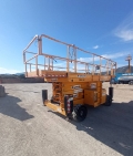 Plataforma tijera diésel de 18m de altura de trabajo. Con estabilizadores hidráulicos automáticos y doble extensión de plataforma. Se entrega con documentación de la máquina (CE, manual de usuario, ficha técnica).