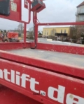 Technische Daten Baujahr 2022 Arbeitshöhe 12,00 m Plattformhöhe 10,00 m Plattformerweiterung 1,43 m Plattformabmessung (L x B) 2,88 m x 1,52 m Gesamtabmessung (L x B x H) 3,84 m x 1,76 m x 2,69 m max. Traglast 454 kg Traglast ausgefahren 136 kg max. Personenzahl 4 max. Steigfähigkeit 40% Gewicht 4.400 kg Fahrgeschwindigkeit 0,48 - 6,0 km/h Hubantrieb 3,8 kw / 48 V Fahrantrieb 3,3 kw / 2x32VAC voll funktionsfähig, allgemeine Gebrauchsspuren, UVV