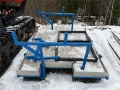 Skuffa kan skiftast ut med medfølgande plan i aluminium med blått stativ, som er laga for frakt av stolpar, røyr og liknande materiell.