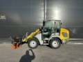 Liten och smidig hjullastare/lastmaskin. Tack vare 4-hjulsstyrningen får man en extremt liten vändradie och mycket bra stabilitet även vid full belastning. Betydligt bättre förarmiljö avseende insteg, sikt, ljud och rymlighet med den nya hytten.