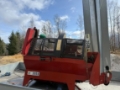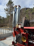 Vedmaskin klar til bruk, lang transportør på 4,3 meter. 6-delingskniv og PTO-aksling.