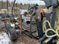 Please provide reference number upon request: S10379 ALSTOR 820 Mini Forwarder   -Brand: ALSTOR -Model: 820 -Y.O.M: 2012 -609.3 hours (currently in use) -Serviced (oil and filter recently changed) -Vanguard 18 hp engine -Gasoline -4-speed transmission plus reverse -Weight: 1,580 kgs -8x8 -Tires (see photos)  Farma C3.5 Crane -Y.O.M: 2012 -Lifting capacity: 300 kgs -Winch -Outriggers Farma GR-0.12 Grapple -Y.O.M: 2012 -Max load: 1000 kgs -Weight: 53 kgs