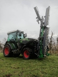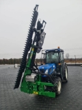 The machine cuts branches up to 6 cm in diameter. The cutting mechanism consists of shears and fingers. It consists of a main frame with 3 m long vertical blades. The device can be equipped with blades or discs mounted horizontally at the top, and a foot with blades. The entire assembly is rigidly mounted to the front of the tractor or to the front three-point hitch. Control is via the tractor's hydraulic system, a hydraulic distributor, or a joystick.