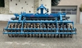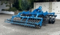 Kurzscheibenegge mit 3 Metern Arbeitsbreite, 24 gezackten Scheiben mit 610 mm Durchmesser und wartungsfreien Lagern, Federbandwalze mit Tiefenverstellung, Randscheibenelemente und wartungsfreie Steinsicherung (Gummifederelemente), Beleuchtung mit Warntafeln und Striegel.