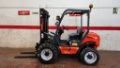 Equipo carretilla todoterreno AGRIMAC TH-15.16, tracción 4x4, mástil tríplex con desplazador lateral, transmisión hidrostática, motor Perkins, bomba hidráulica Rexroth, capacidad 1800kg / año 2008 / alcance 5.30m, matriculado con documentación original, certificado de conformidad CE, libre de deudas/cargas o gravámenes, SIN filtros de partículas DPF ni postratamientos DEF (adblue), excelente rendimiento y fácil mantenimiento, ideal para construcción, agrícola o ganadero. Posibilidad de gestionar y organizar el transporte a destino.