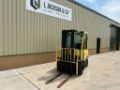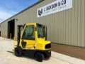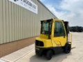 Hyster H2.5FT Diesel Forklift 2,500 Kg Lift Capacity Enclosed Cab 3 Stage mast 4,950 mm lift height Side Shift Load Guard Solid Tyres Reverse alarm Flashing light Cab Heater 1200mm tines CE Marked Great condition well maintained ex government contract Stock No: LJ01792