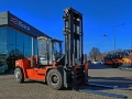 Uwaga dla klienta ostatecznego: Kalmar DCE150-12 rok produkcji 2005 udźwig 15000 kg maszt duplex wys. podnoszenia masztu +/- 5000 mm wys. konstrukcyjna masztu +/- 4300 mm waga +/- 23420 kg napęd diesel kabina pełna silnik Volvo, moc 145 KW opony przód 12.00-20 PN BLIŹNIAKI opony tył 12.00-20 PN pozycjoner wideł widły, SpecialEquipment: Vollkabine, Zwillingsbereifung, OtherAttachments: Fork positioners