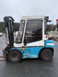 Myydään suoraan käytöstä toimiva 3tn Stocka diesel trukki haarukoiden asetinlaitteella.