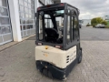 Crown SCT 6020-1.3 electric forklift, battery: 06.2020, year of manufacture: 2016, hours: only 2.534h, previous owner German Armed Forces, rated load capacity: 1.300kg, lift height: 4.300mm, Fork length: 1.200 mm, side shift, triplex mast with free lift, full cab with heating, incl. charger, STVZO lighting, rear window defective, ready for immediate use!