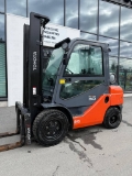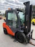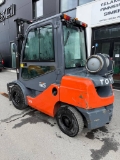 Erittäin pienillä tunneilla oleva 3tn Toyota kaasutrukki. Mm. henkilönostovalmius, haarukoiden asetinlaite, fingertip minivivut Trukki nähtävillä Lempäälän toimipisteellä.