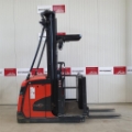 Batterieraum Rollenbahn, frei fahrbar, ohne Gangerkennung, Zusatzhub, Gabelträger 420-640mm, 2x Rückspiegel hubgerüstseitig, Stangensystem, Schranken seitlich, Bedienpult mastseitig mit Lenkrad, Drucktaster für Zusatzhub, LED-Display, Vorbereitung 12V Ter