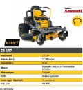 NY CUB CADET Z3 137 Engine type Kawasaki FR691V Engine displacement 726 cm» Rated power 14,7 kW / 2850 min-1 Cylinders V-TWIN dual cylinder Tank volume (capacity) 13,25 l Lubrication Full-pressure with spin-on oil filter Transmission / Control Dual Hydrostatic / Control lever / lap bar Bag optional Grass deflector Standard Wheel size (f/r in inch) 11 x 6 / 20 x 12 - Turf Armor Turning radius 0 cm Lawn area (rec./up to) 12.500 m¾/h Cutting width 137 cm Cutting height (min.-max.) 25-114 mm Cutting options 2-in-1 Deck engagement Electric PTO Deck height positions 15 positions Wash nozzle / Mulch Kit - / Standard Mow in reverse - LpA / LwA / LwAg 90,2 / 102,8 / 105 dB (A) Vibration value body / K-factor 0,5 / 0,3 m/s2 Vibration value hand/arm / K-factor 3,9 / 2,0 m/s2 Dimensions (L/W/H) 203 cm / 164 cm / 117 cm Net weight 312 kg Model number 17AIECE3603 SPECIAL FEATURES New, modern design Easy control via control lever Solid steel tube frame construction Comfortable, cushioned seat with high backrest, adjustable Robust, stamped and