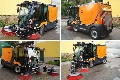 unabhängige Besensteuerung L + R: getrennt steuerbare Besen, auf/ab, links/rechts, Besendrehzahl von 0 - 120 U/min, Kehrbreiten: 1650 - 2450 mm, hydraulisch neigbare Seitenbesen